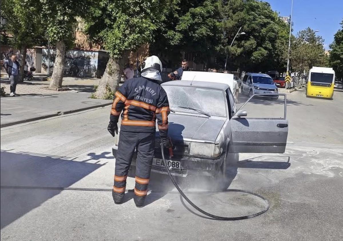 Çankırı Lisesi Işıklar Kavşağı'nda meydana gelen olayda, seyir halindeki Fiat Tofaş otomobilin motor kısmı, henüz bilinmeyen bir nedenle alev aldı.