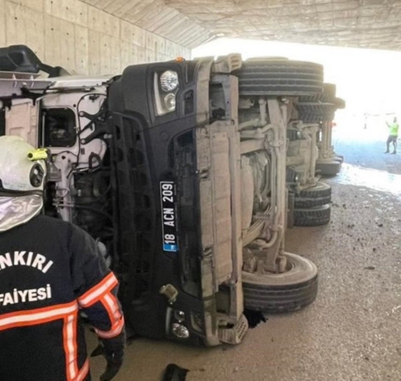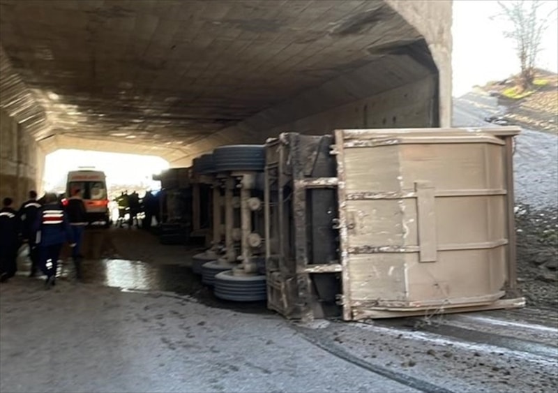 Süleymanlı köyü alt geçidinde kontrolden çıkan tırın devrilmesi sonucu araçta bulunan 4 kişi yaralandı.