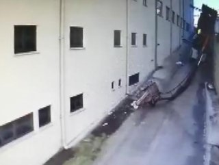 İstanbul Esenyurt'taki bir fabrikanın çatısında yapılacak izolasyon çalışması için yetkililer, vinç kiraladı. Fabrikanın arkasına yokuş aşağı park edilen vincin sepetine çıkan bir işçi, çalışmaya başladı.