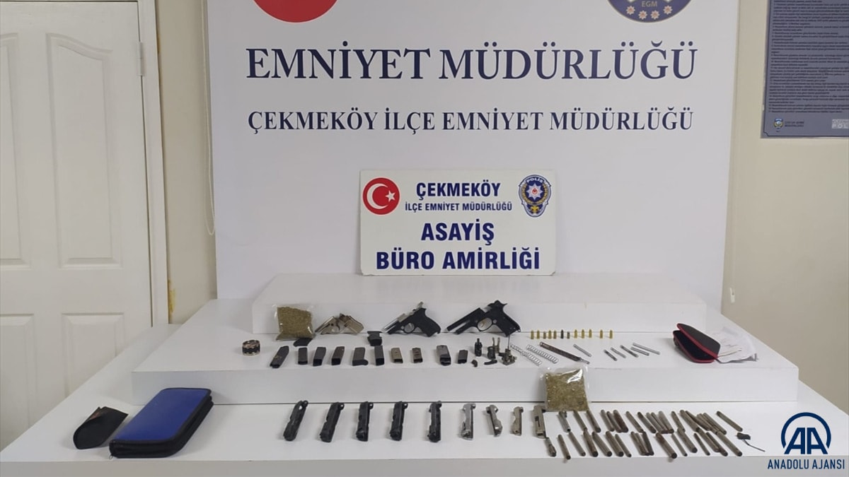 Şüphelinin silah ticareti yaptığı ve Kemal Türker Mahallesi'ndeki iş yerinde silah imalatının bulunduğunun belirlenmesi üzerine belirtilen adrese baskın düzenleyen ekipler, burada yaptıkları aramada, 4 ruhsatsız tabanca ile namlu, tetik, kabza, şarjör, sürgü, tabanca iskeletleri gibi çok sayıda silah parçaları ve 107 gram uyuşturucu ele geçirildi.