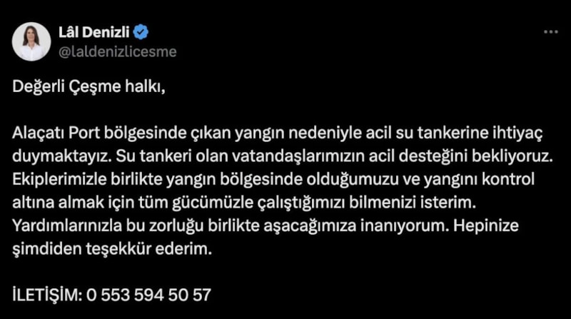 Yangın tehlikesine karşı bir önlem almak yerine 3 gün boyunca sürecek olan ot festivaline 15 milyon TL harcayan Denizli, yangın zamanında ise sosyal medya hesabı üzerinden halktan su tankeri istedi.