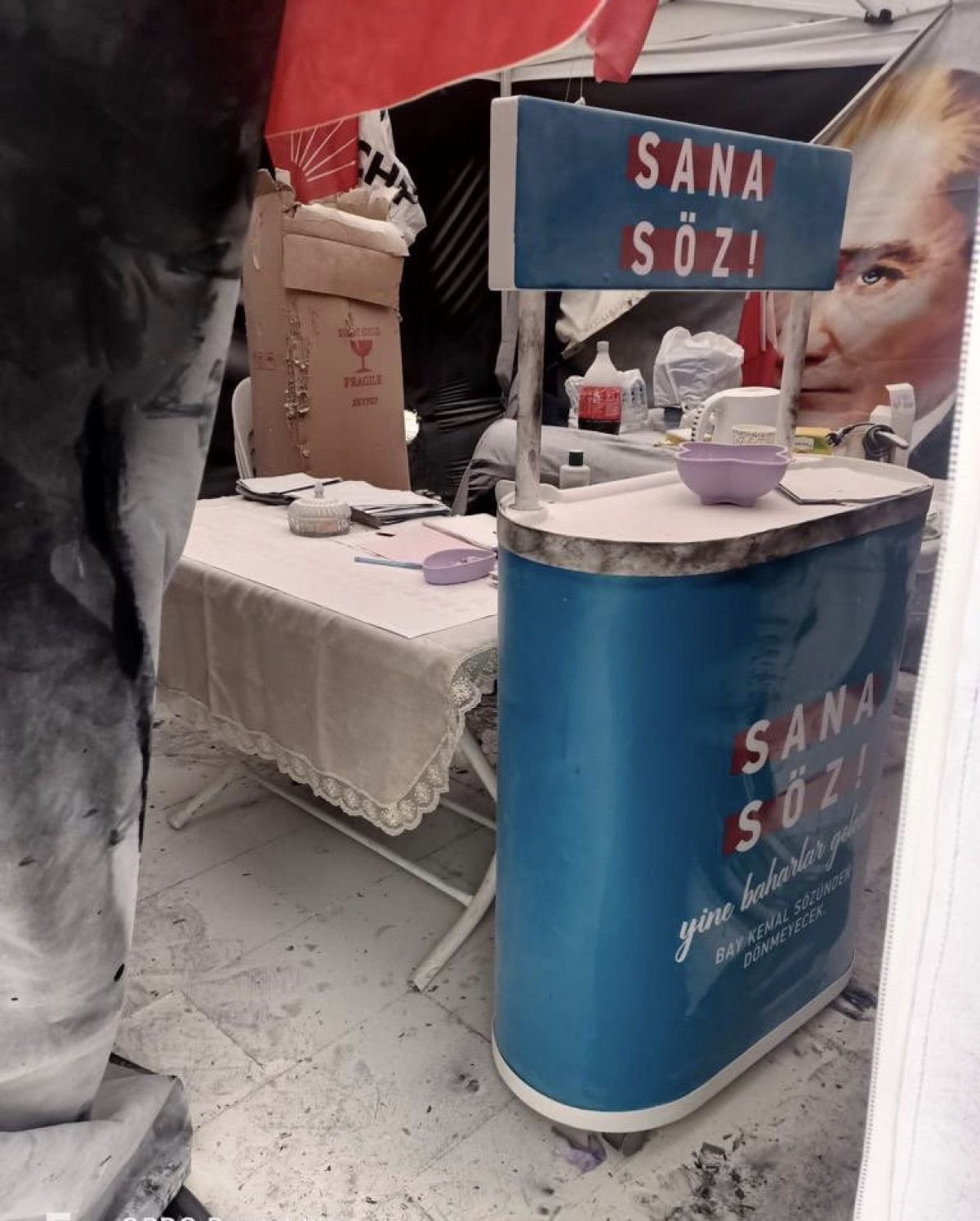 Gözaltına alınan şahsın, CHP’nin “saldırı” iddiasının aksine ısınmak için girdiği çadırda yaktığı karton parçalarını söndürmeden çıkması sonucu çadırda yanma oluştuğu ortaya çıktı.