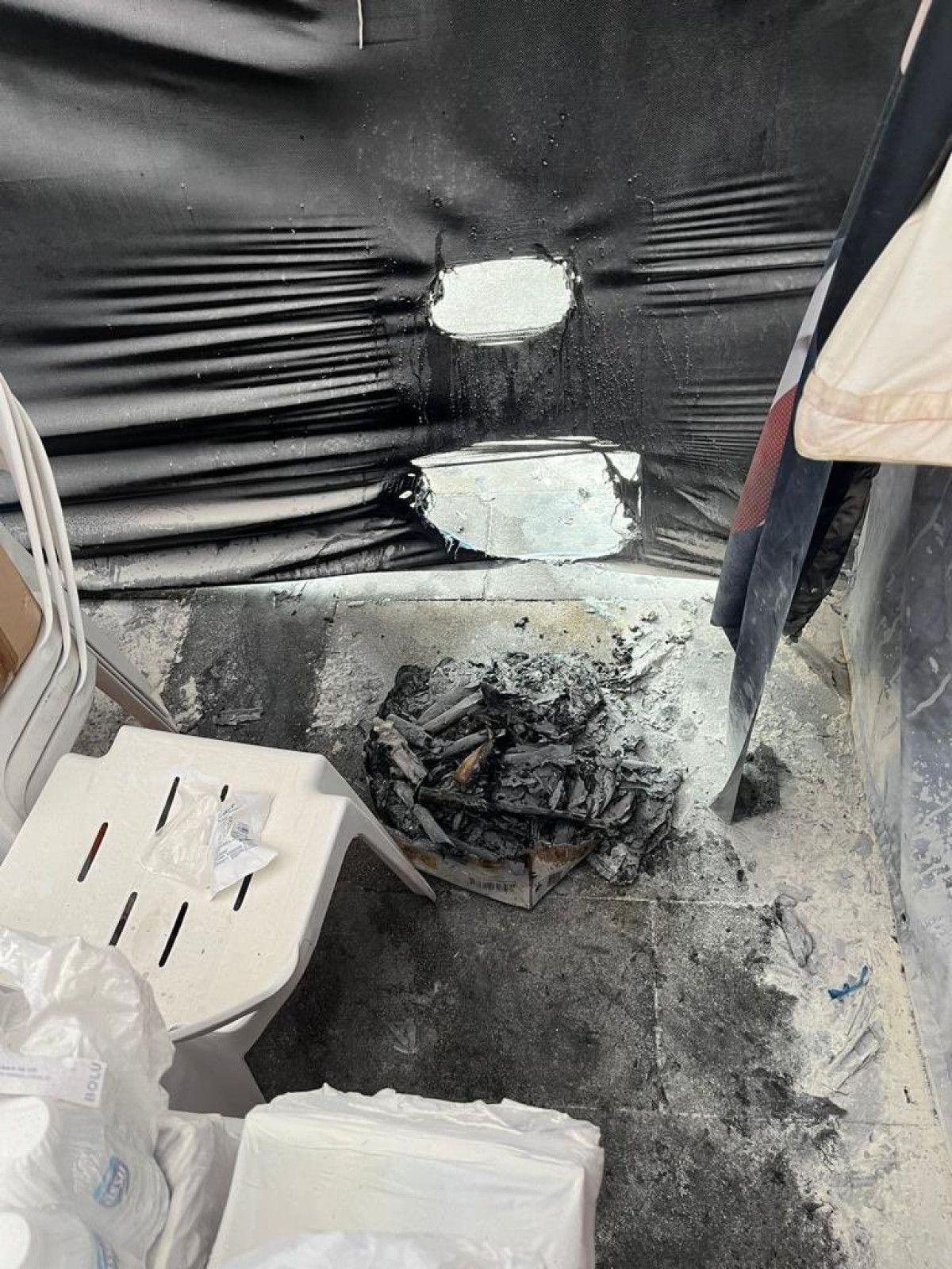 Çadırın muhtelif yerlerinde meydana gelen yanma kısa sürede söndürülürken, olayla ilgili emniyete şikayette bulunuldu.