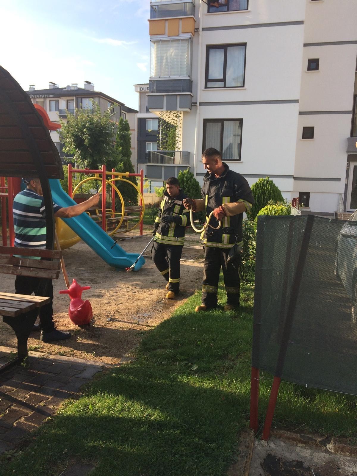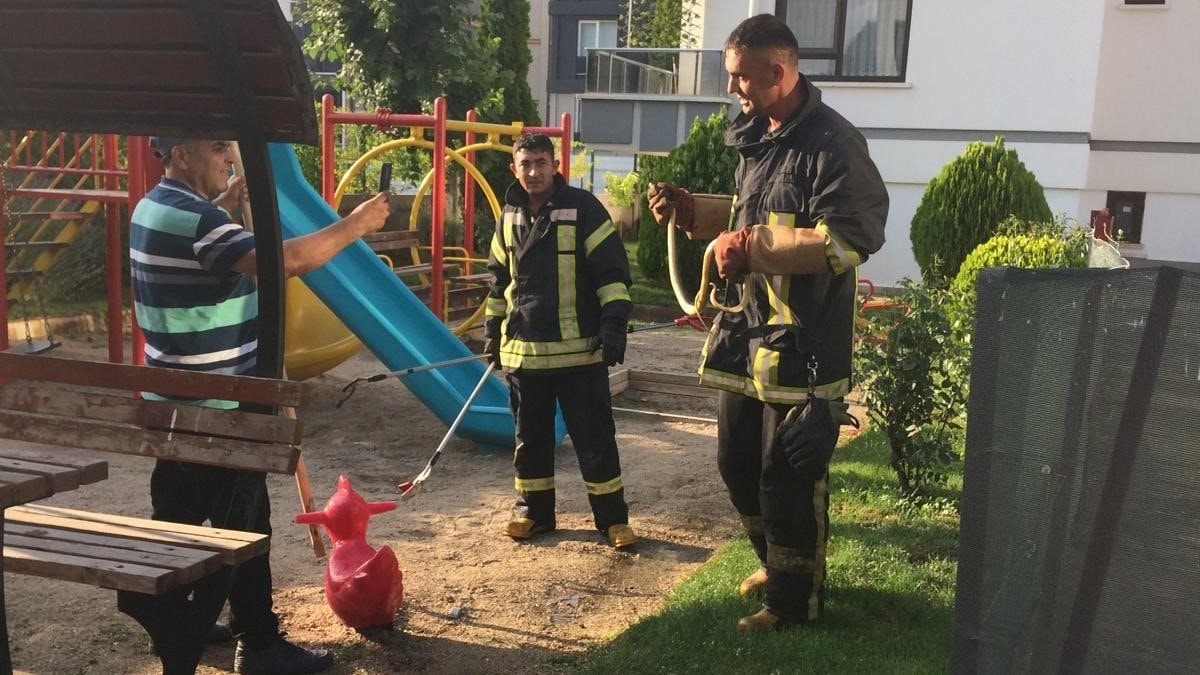 Afyonkarahisar kent merkezi Selçuklu mahallesinde meydana gelen olayda, edinilen bilgilere göre, mahalledeki sitede bulunan oyun alanında yılan olduğunu fark eden site sakinleri durumu itfaiyeye bildirerek yardım istedi.