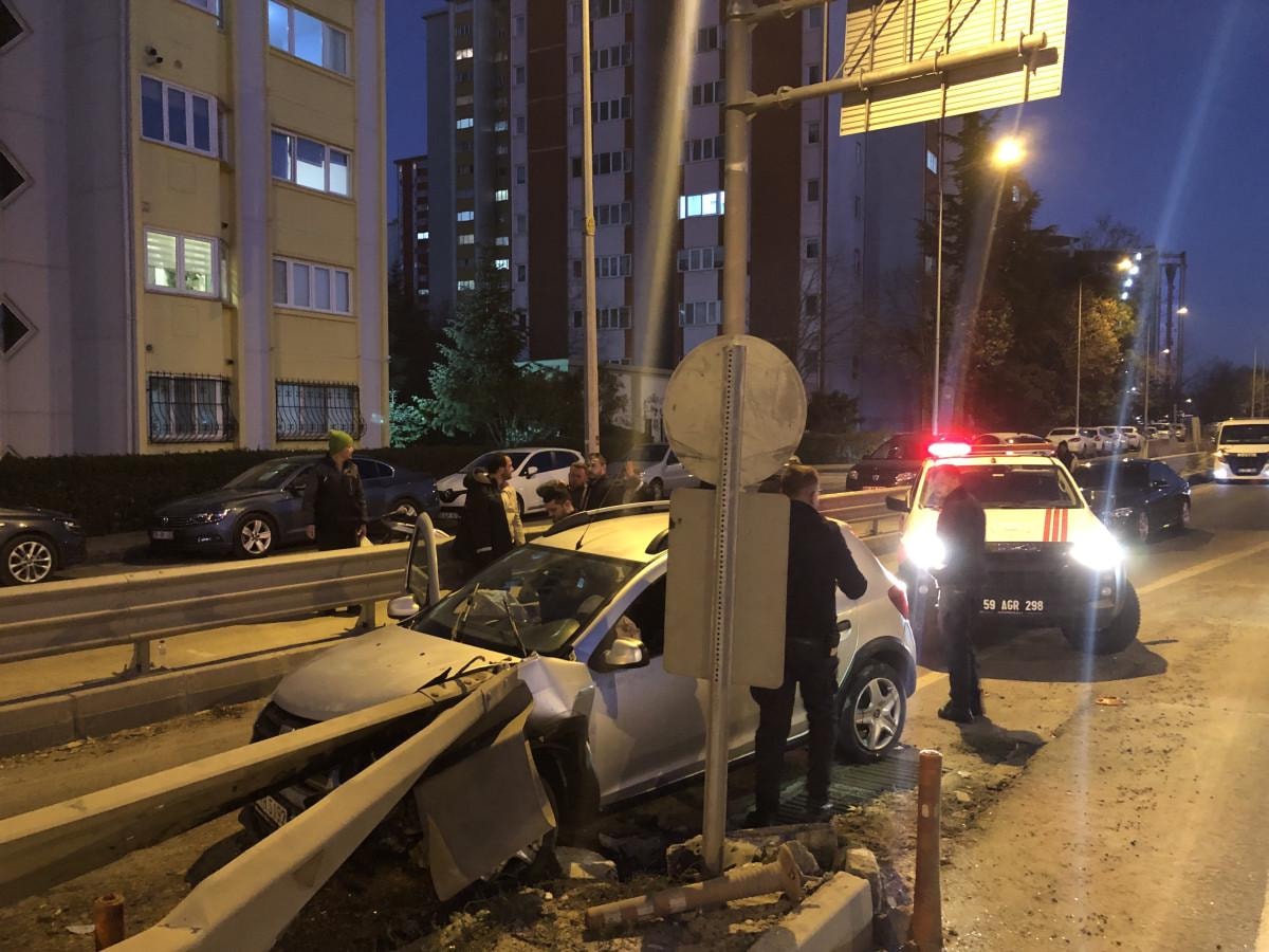Emlaklar istikametine seyreden Ogün A. idaresindeki otomobil, sürücüsünün direksiyon hakimiyetini kaybetmesi sonucu yol ayrımındaki bariyerlere çarptı.