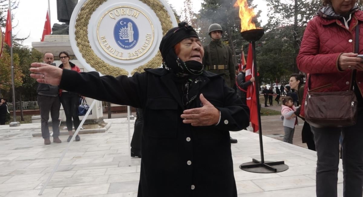 Tören, Atatürk Anıtı’na çelenk konulmasıyla başladı. Gazi Mustafa Kemal Atatürk’ün hayata gözlerini yumduğu saat 09.05’te sirenlerin çalınmasıyla birlikte tüm Türkiye’de olduğu gibi Çorum’da da saygı duruşunda bulunuldu, bayraklar yarıya indirildi.