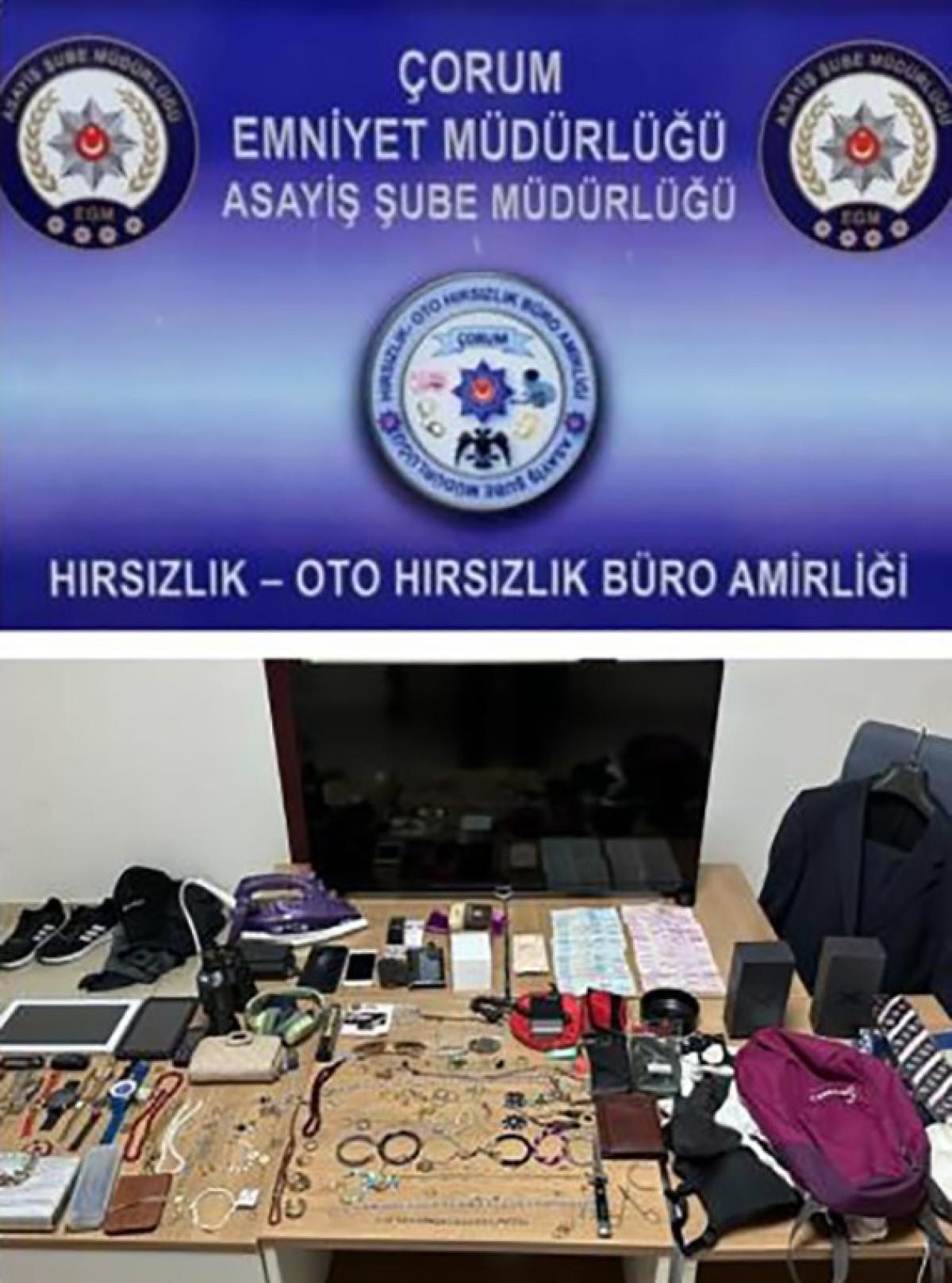 Çorum'da Kale, Bahçelievler ve Gülabibey mahallelerinde 5 ayrı evde meydana gelen hırsızlık olayları üzerine Asayiş Şube Müdürlüğü Hırsızlık Büro Amirliği ekiplerince çalışma başlatıldı.