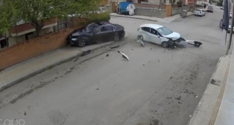 Kent merkezinde, 2 otomobilin çarpıştığı kazada 7 kişi yaralandı. Kazada küçük çocuğun, otomobil camından fırladığı anlar, güvenlik kamerasına yansıdı.