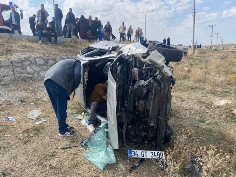 Çorum'un Alaca ilçesinde düğün konvoyundaki Hüseyin A. yönetimindeki otomobil, sürücüsünün direksiyon kontrolünü kaybetmesi sonucu yoldan çıkarak tarlaya yuvarlandı.