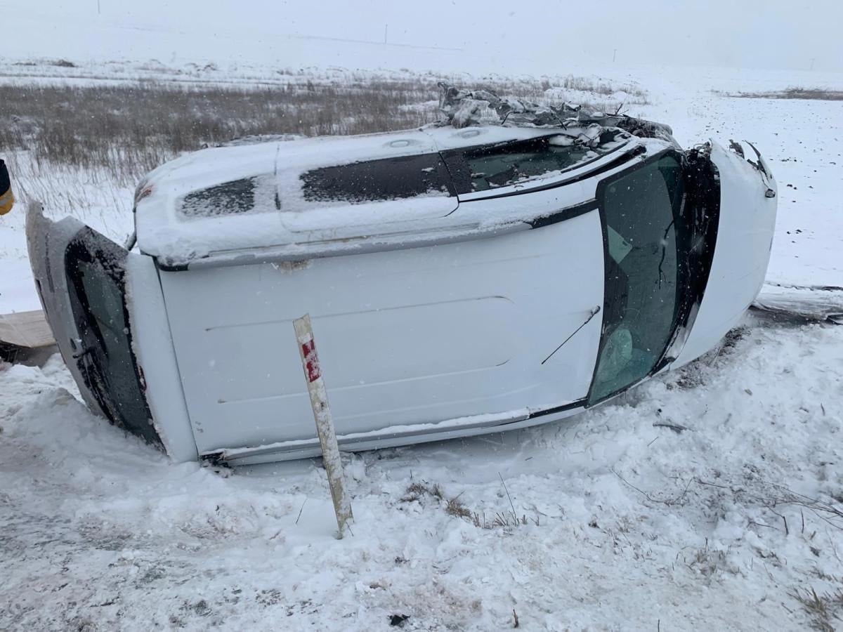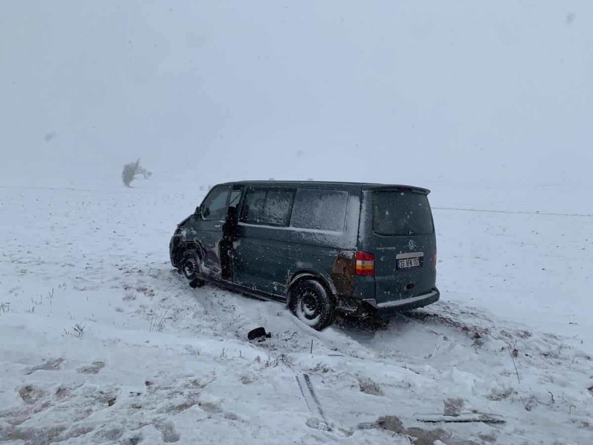 Çarpmanın etkisi ile savrulan hafif ticari araç şarampole devrilirken, minibüs ise tarlada durabildi. Kazada minibüs sürücüsü ile Turan T. yaralandı.