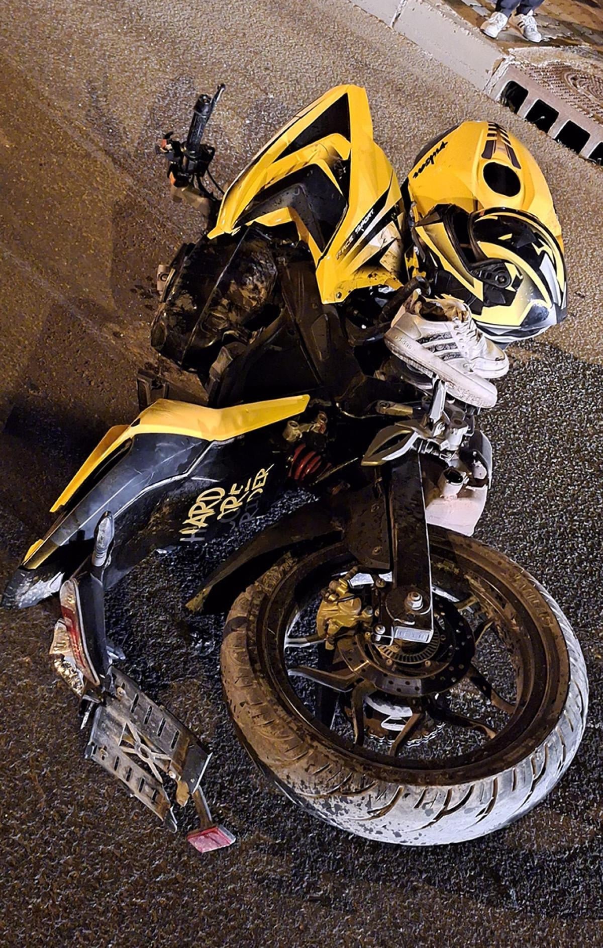 Çarpmanın etkisi ile motosiklet sürücüsü metrelerce savruluyor.