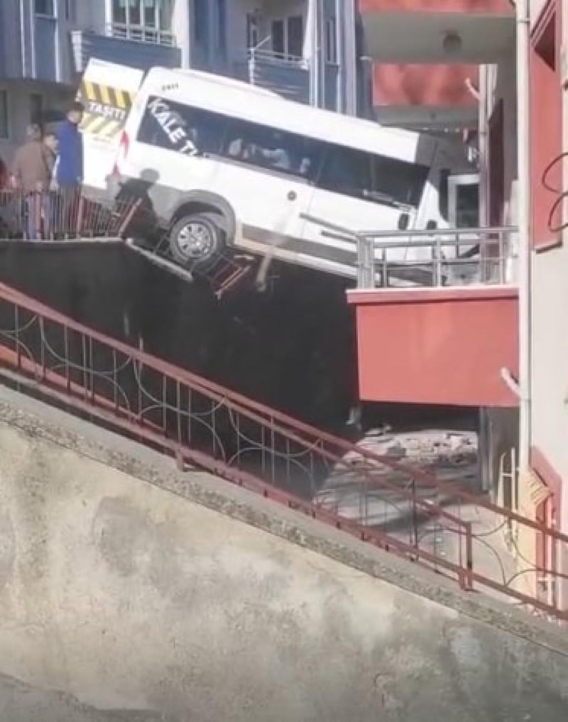 Kaza ihbarı üzerine olay yerine polis ve sağlık ekipleri sevk edildi. Çarpmanın etkisiyle balkonun camları ve duvarı yerle bir olurken, serviste bulunan lise öğrencileri S.E.Ö. (17) ile M.A.B. (17) hafif şekilde yaralandı.