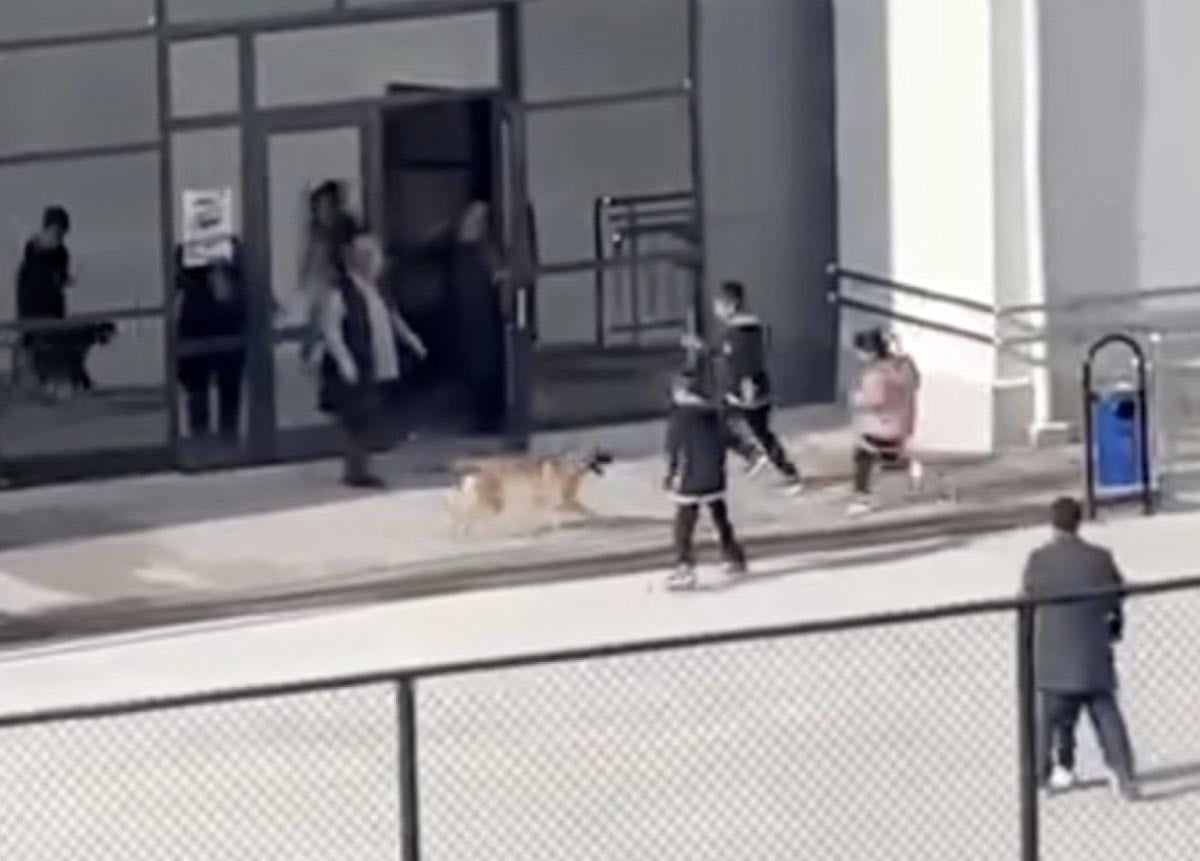 Köpeğin üzerlerine doğru koştuğunu gören öğrencilerin bazıları koşarak okul binasına girerken, bazı öğrenciler ise büyük panik yaşadı.