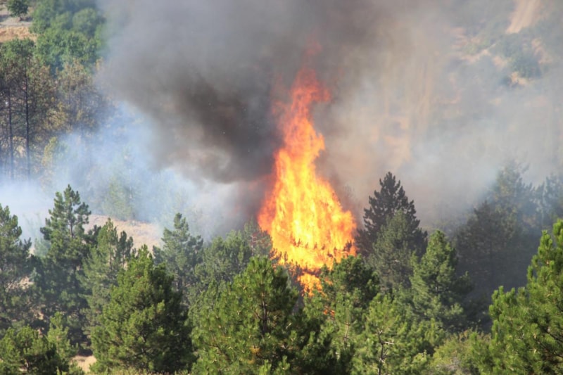 Çorum'da Merkez ilçeye bağlı Çalyayla köyü Cıllık mevkiindeki ormanlık alanda meydana gelen olayda, henüz bilinmeyen bir nedenle yangın çıktı.