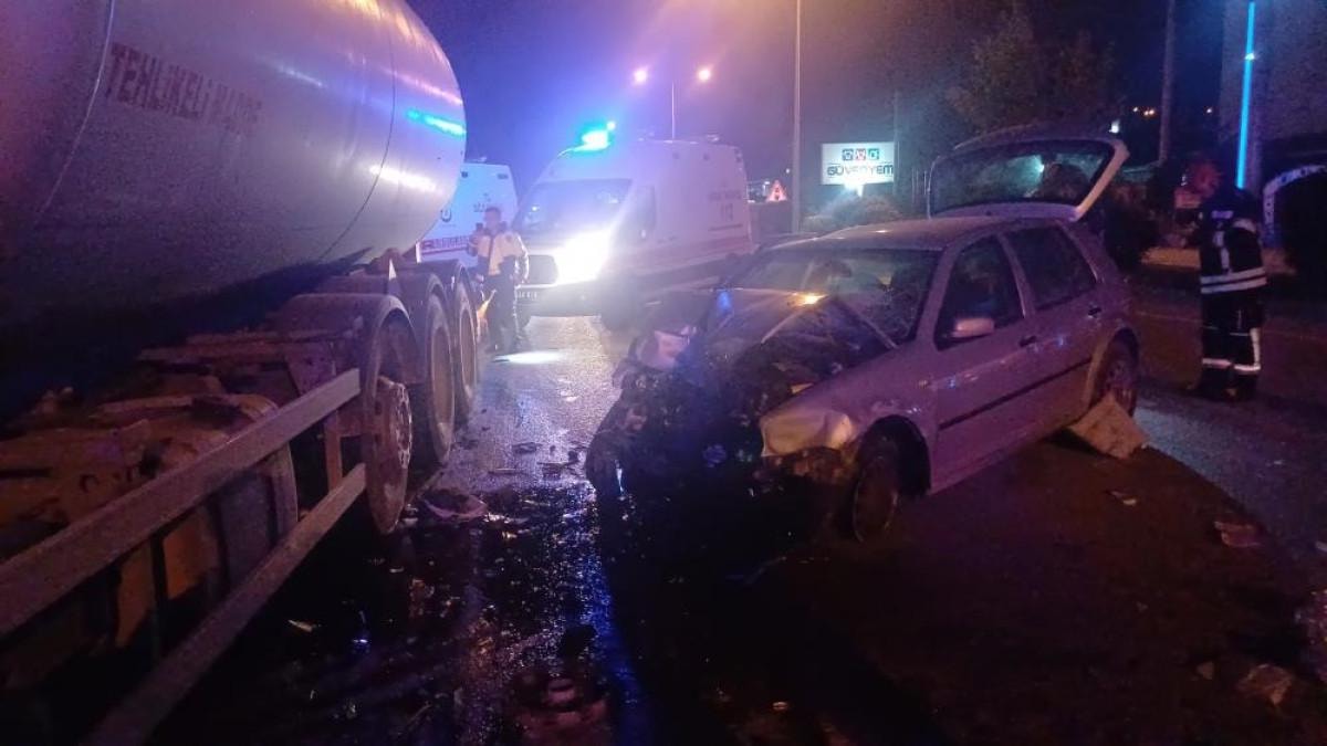 Çorum'da A.B. yönetimindeki otomobil, Kırıkkale kara yolunda sürücüsünün direksiyon hakimiyetini kaybetmesi sonucu kontrolden çıkarak karşı şeride geçerek Ö.Y. idaresindeki akaryakıt tankeriyle çarpıştı.