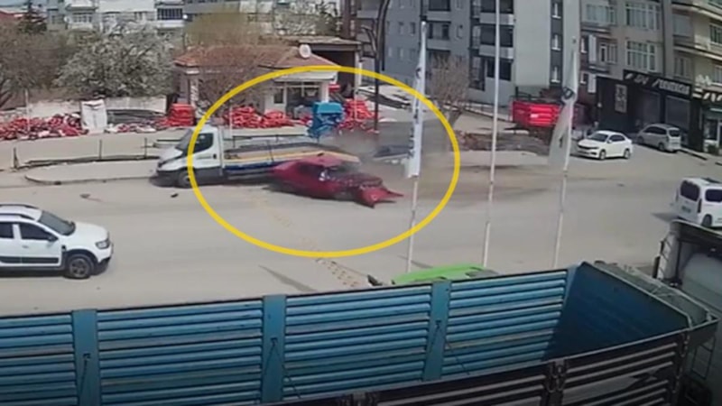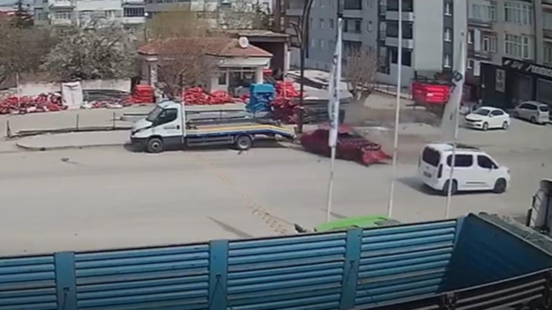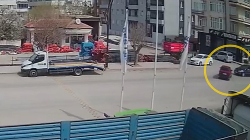 Öte yandan kaza bir iş yerinin güvenlik kamerasına yansıdı.