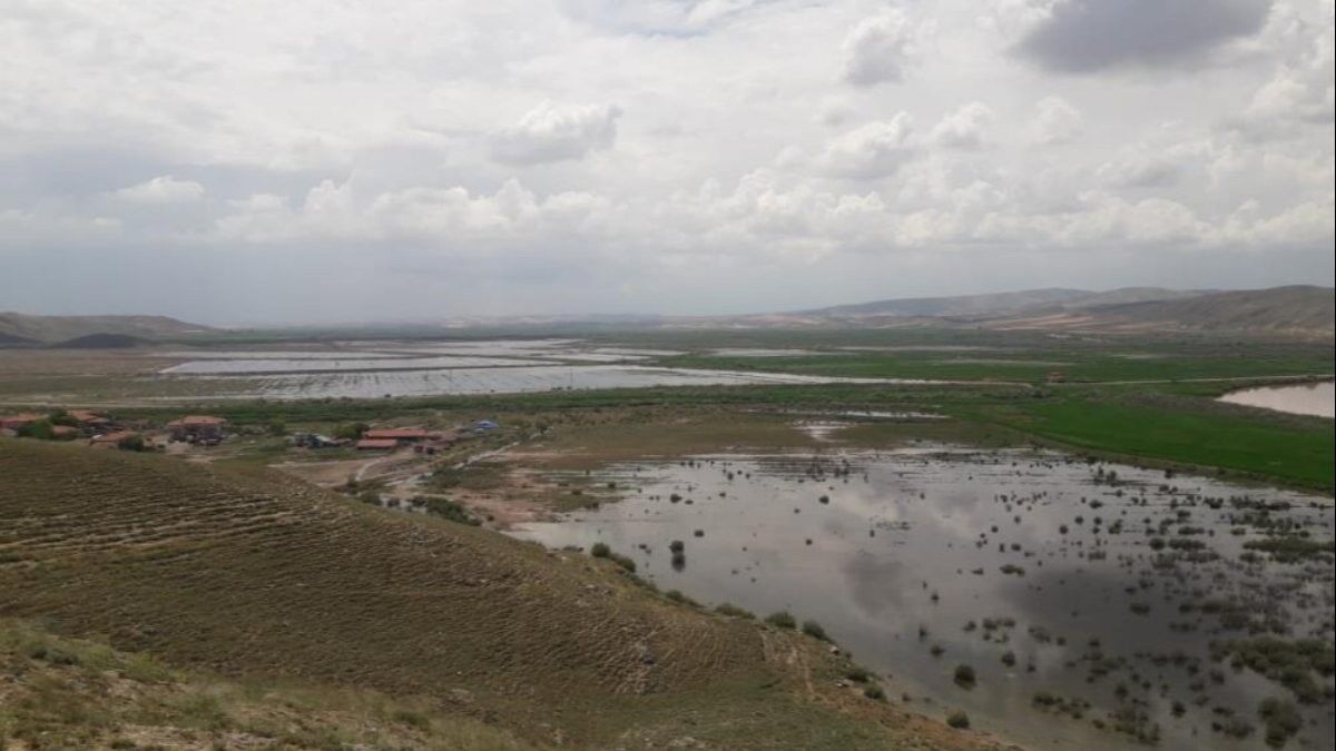 İHA'nın haberine göre; dün ve bugün yağan şiddetli yağmur nedeniyle yine arpa ve buğday ekili tarım arazilerine zarar verdi.