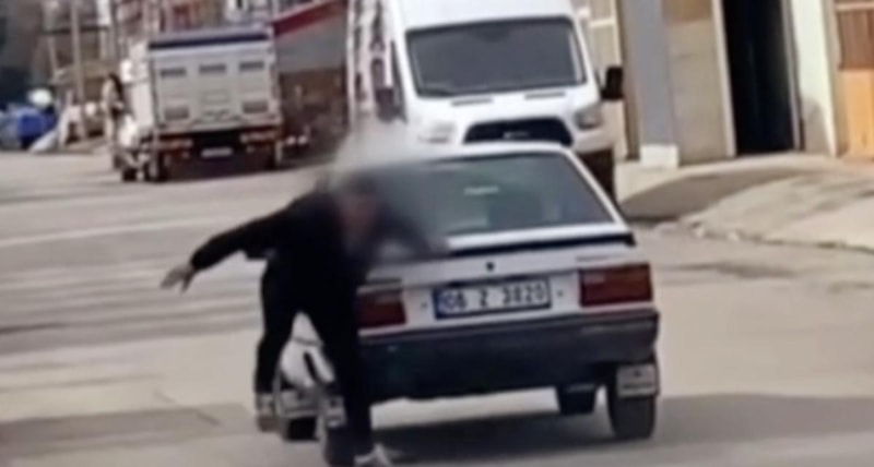 Çorum'da tavanına çıktığı seyir halindeki otomobilden düşen gencin yaralandığı anlar cep telefonuyla görüntülendi.