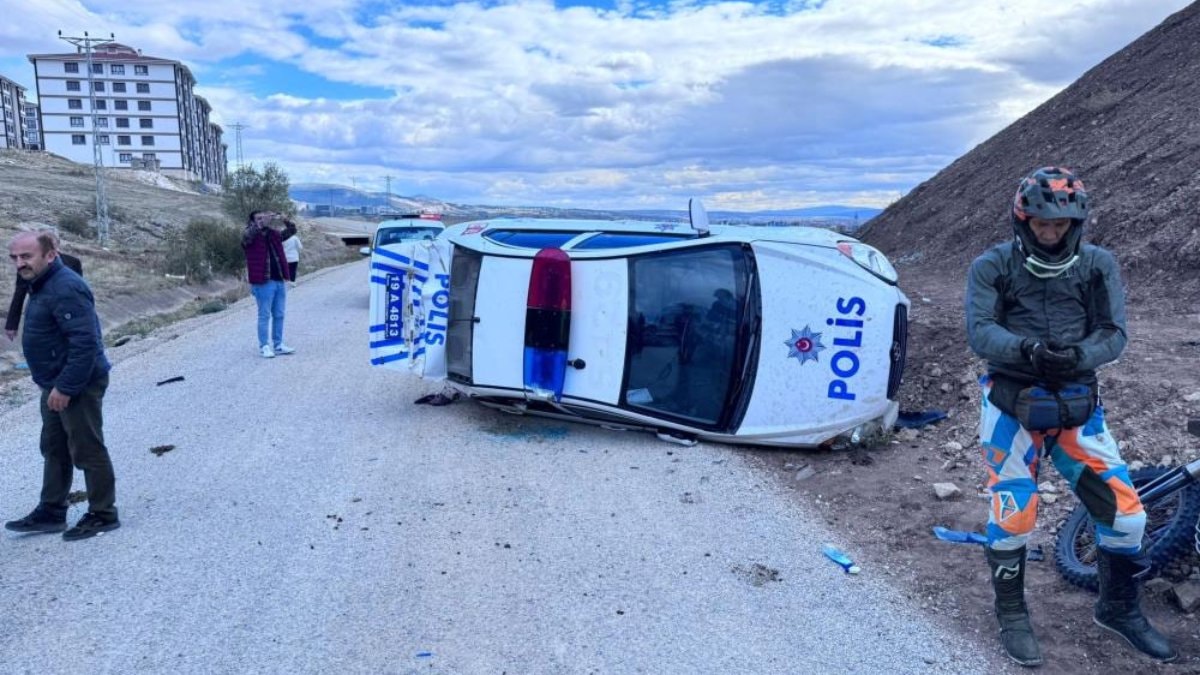 Kovalamaca sırasında kontrolden çıkan polis otosu takla attı. Kazada polis memurları H.K ve M.U yaralandı.