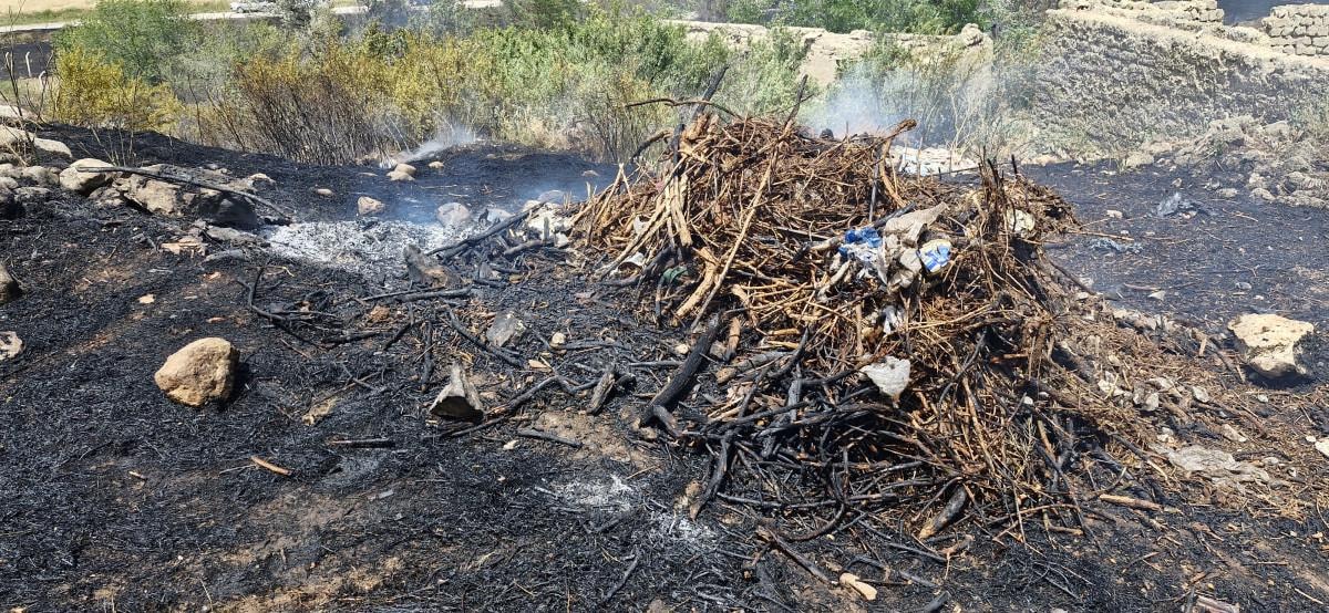 İşlerim için ilçeye gitmiştim. Eşim aradı ve köyde yangın olduğunu söyledi. Hemen itfaiye haber verdim. İtfaiye ve jandarma ekipleri ile köylüler yangına müdahale etti. Devletimiz bütün imkanlarını seferber etti. Yaklaşık 30-40 dönüm alan yandı. Bununla geçmiş olsun. 600 balya saman vardı, onlar da yandı. Evlere sıçramadan tedbirimizi aldık. Vatandaşımızın birisi evinin etrafındaki otları temizliyormuş. Yaktığı ateş araziye sıçramış. O da bilinçli yapmamış keşke olmasaydı. Artık yapacak bir şey yok.