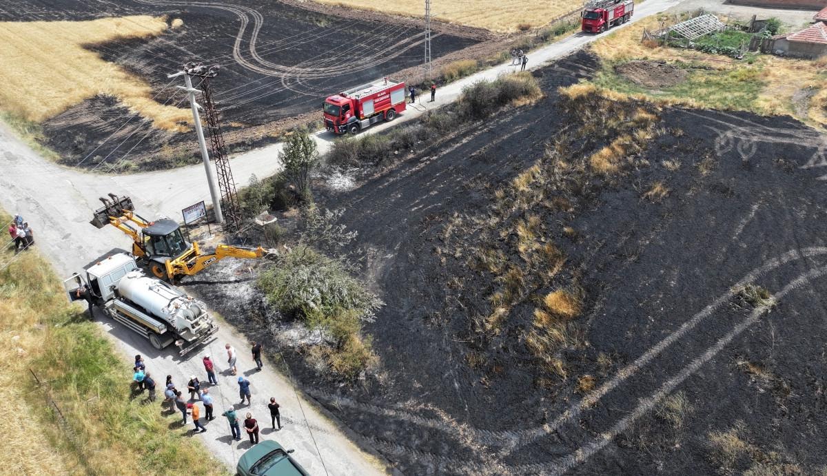 Yangında 31 dönüm ekili arazi ile 600 adet saman balyası ve bir meyvelik yandı.