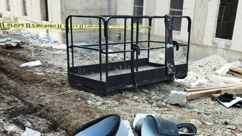 Sepetin düştüğünü gören diğer işçilerin ihbarı üzerine olay yerine polis ve sağlık ekipleri sevk edildi.