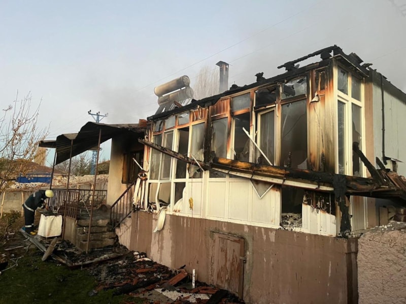Çorum'un Alaca ilçesinde bulunan İbrahim U.'ya ait müstakil evde henüz belirlenemeyen sebeple yangın çıktı.
