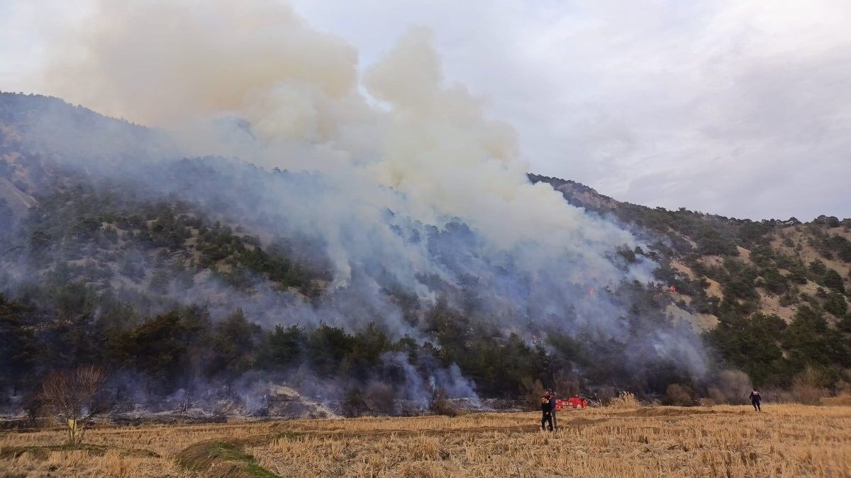 Avşar ve Adadağı mevkilerinde etkili olan yangın alanında itfaiye ekiplerinin soğutma çalışmaları devam ediyor.