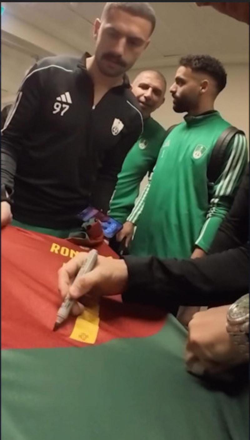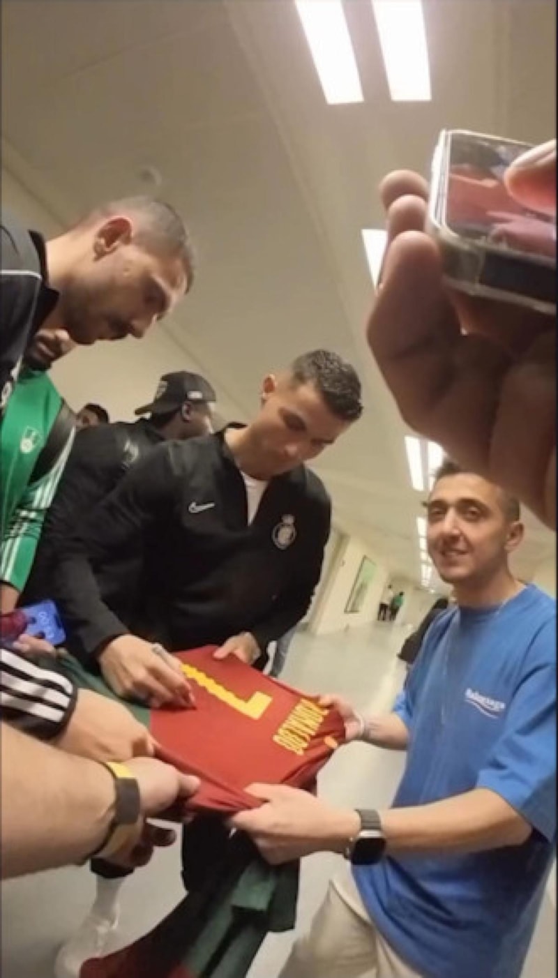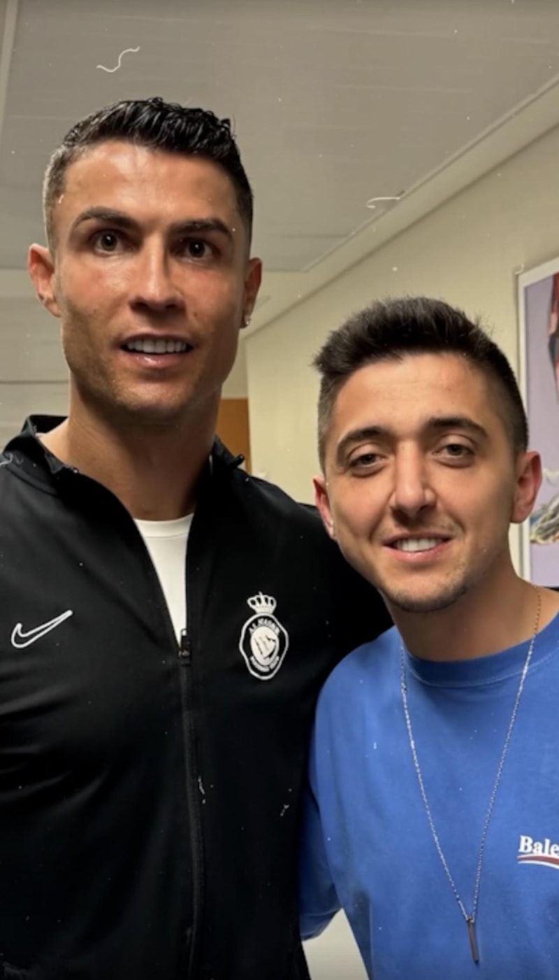 Cristiano Ronaldo ve Merih Demiral, karşı karşıya geldikleri Al Nassr- Al Ahli mücadelesi sonrası Mus-Car yöneticisi Mustafa Akan ile bir araya geldi. İki isim de Akan için forma imzalayıp hatıra fotoğrafı çektirdi.