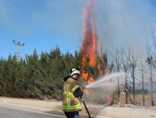 Kaynaktan çıkan kıvılcım çam ağaçlarını yaktı İZLE