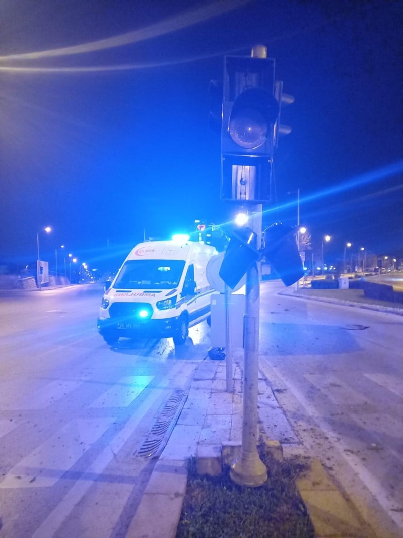 Motosikletle trafikte ilerlerken akrobatik hareketler yapan sürücü, kırmızı ışıkta durmak üzere yavaşladığı sırada dengesini sağlayamadı, trafik ışıklarına çarptı ve 15 metre sürüklenerek yaralandı.