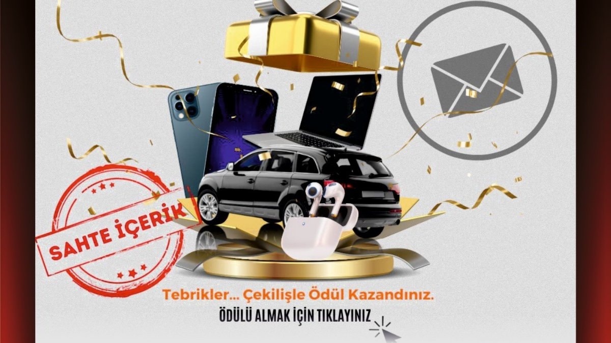 Herhangi bir ödül ya da hediye kazandığına dair şüpheli bir mesaj alan kişilerin durumu hemen yetkililere bildirmesi gerektiği hatırlatıldı.