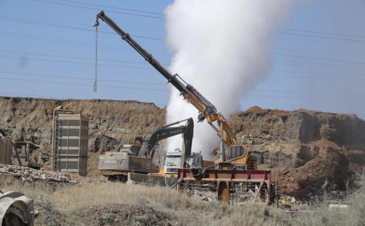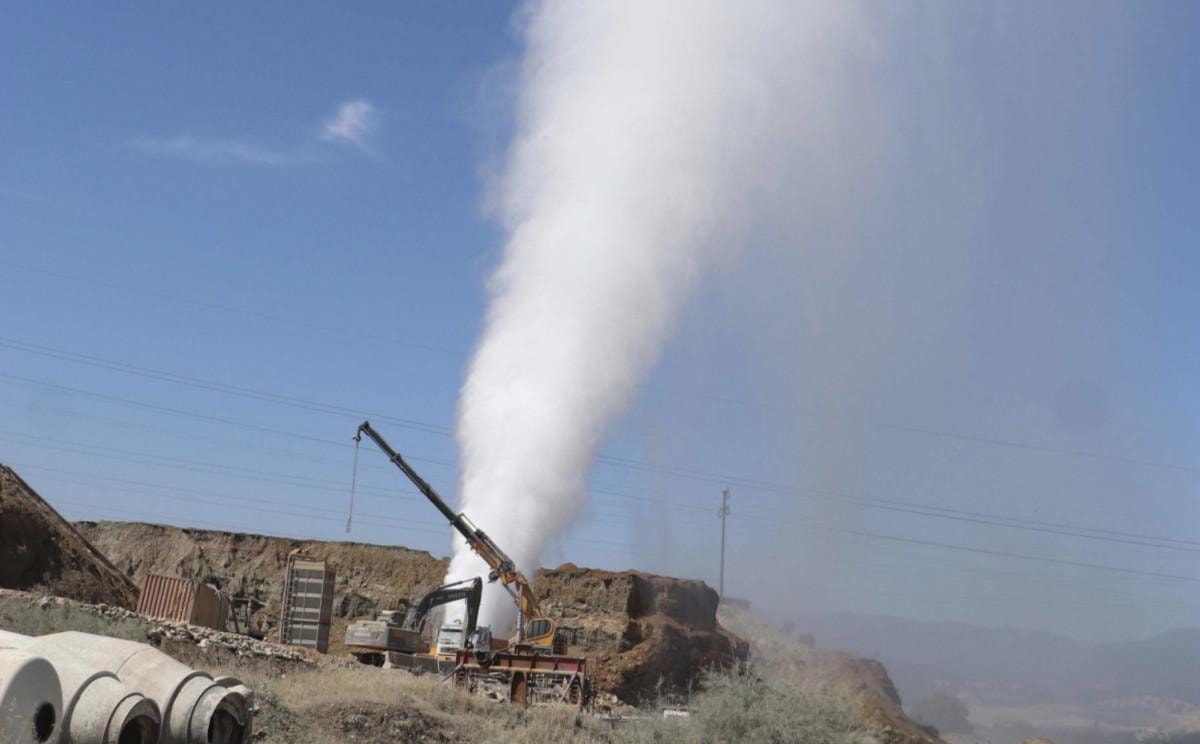 Yerin 850 metre altında hidrojen sülfür gazının patlamasıyla jeotermal su, metrelerce havaya yükseldi.