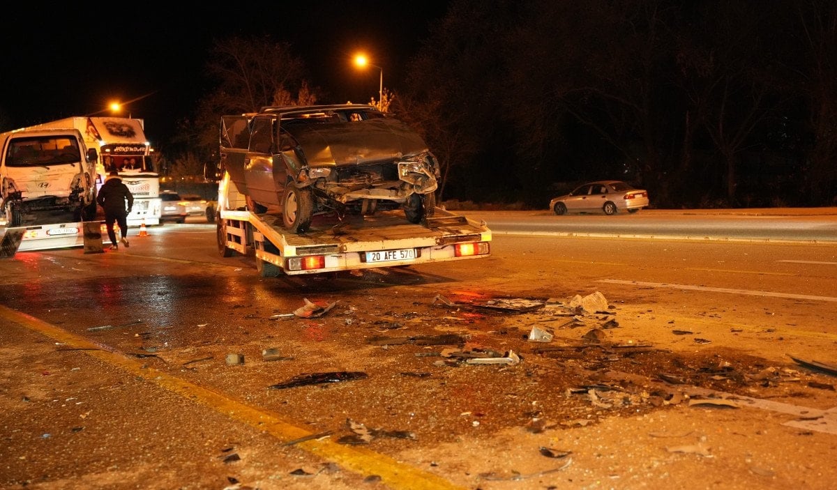 Denizli'nin Pamukkale ilçesinde seyir halindeki otomobilin aniden durmasının ardından, bir kamyonet bu araca arkadan çarptı.