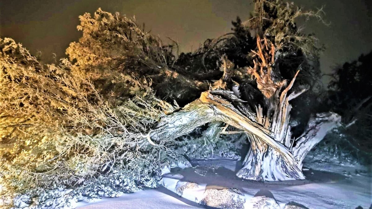 Bayıralan Mahallesi Türkmen Tepesi Erdinlendi mevkisinde bulunan 500 yıllık tarihi ardıç ağacı, saatteki hızı 80 kilometreye ulaşan şiddetli fırtınaya daha fazla dayanamayarak devrildi.