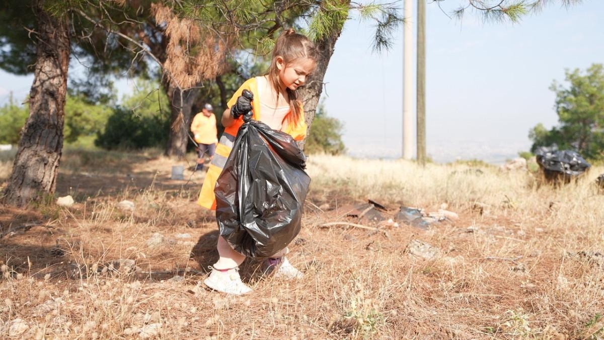 Belediye ekipleri ile birlikte Şahin Tepesi’nde bir araya gelen Zeynep, alanda çöp toplayarak çevre temizliği konusunda farkındalık oluşturdu.
