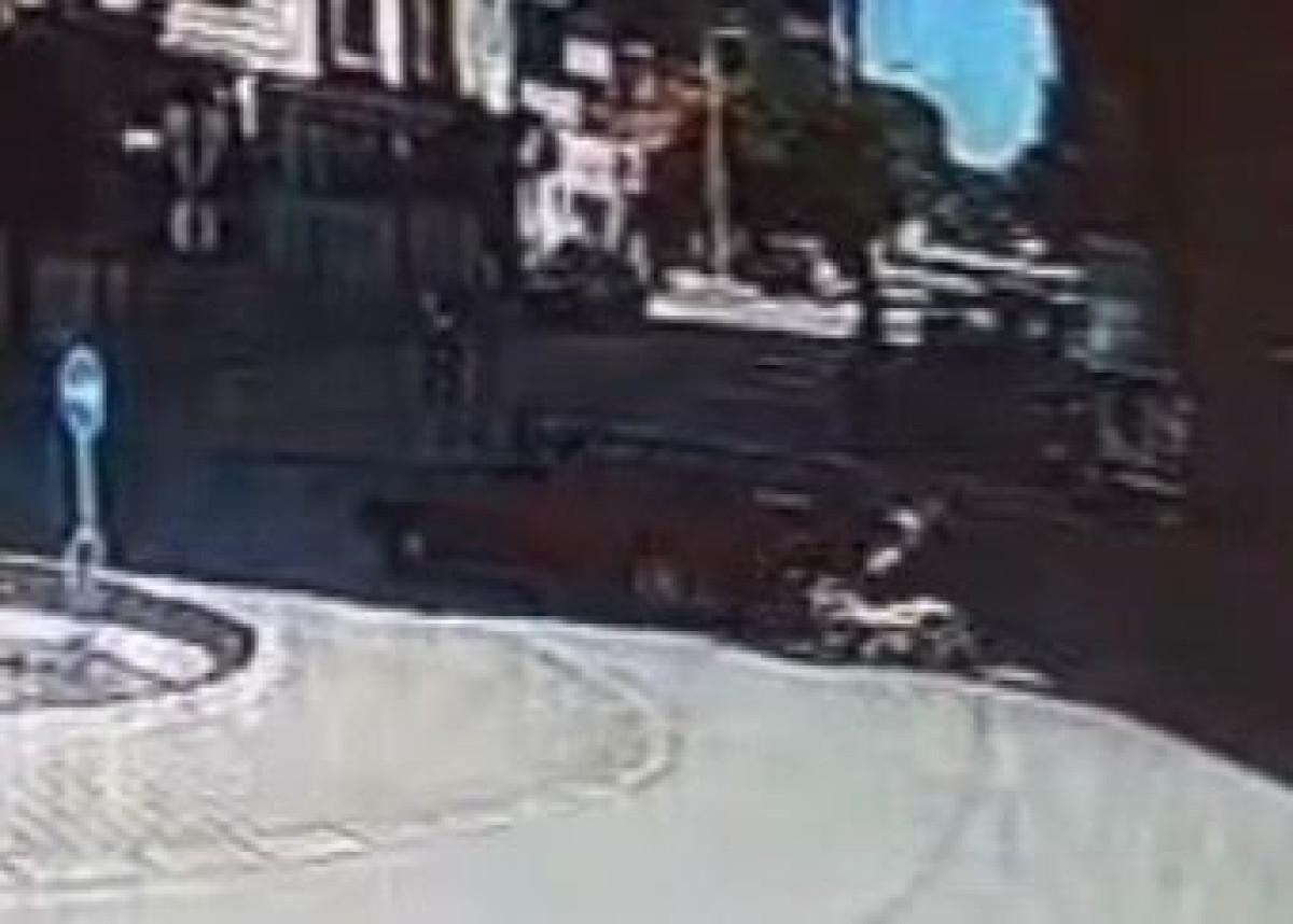 Faaliyet gösteren bir işletmenin güvenlik kamerasına yansıyan görüntülerde motosiklet sürücüsünün döner kavşakta seyir halindeyken, otomobilin çarptığı ve sonucunda ise motosikletin devrildiği görüldü.