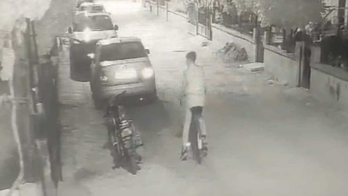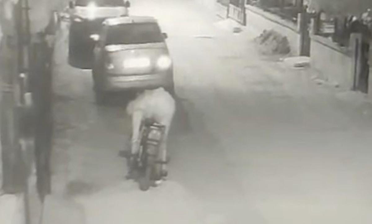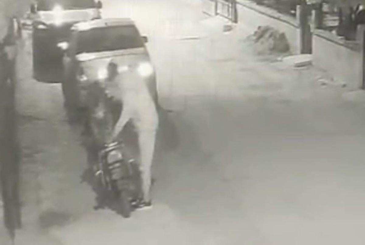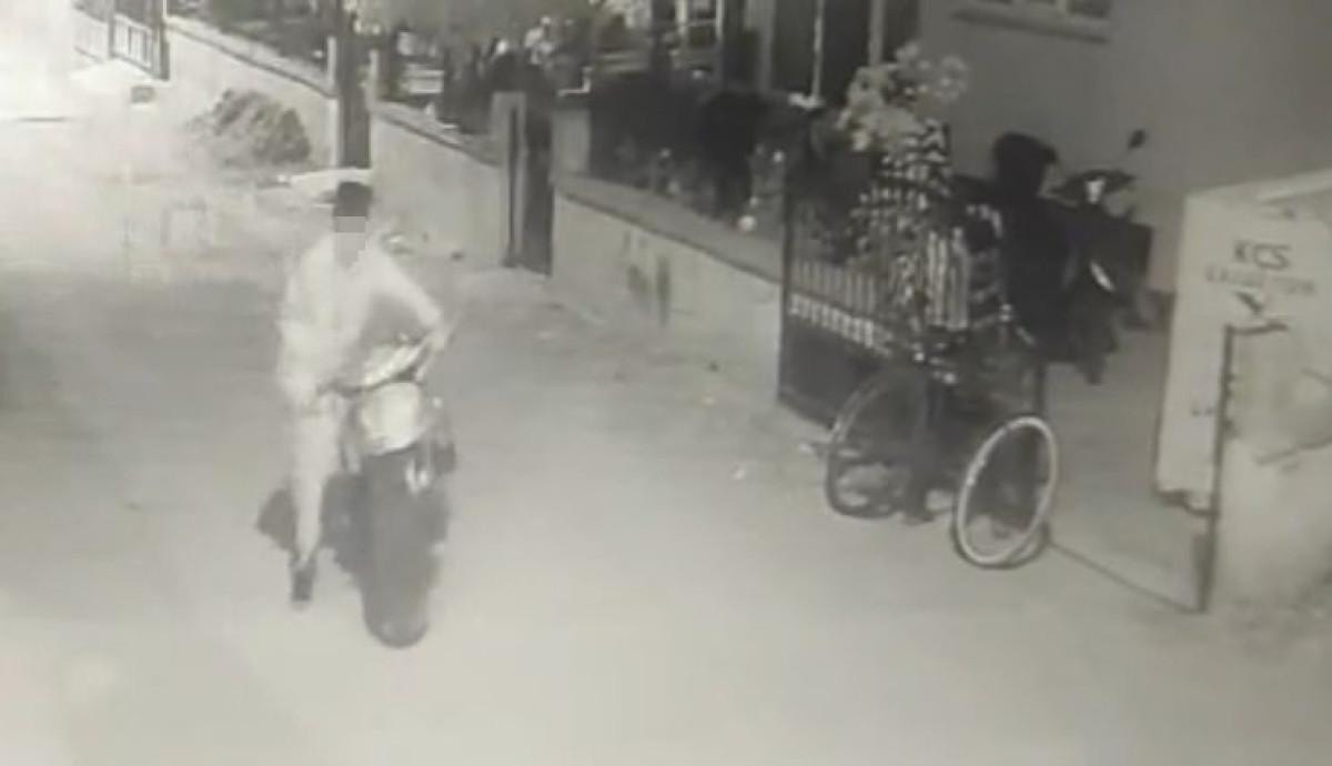Görüntülerde, gece saatlerinde henüz kimliği belirlenemeyen şüpheli şahıs önce bisikleti ile gelip ardından park halinde bulunan motosikleti bakmak için bisikletini yol kenarına koydu.