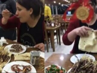 151 tane çöp şişi yarım saat içerisinde yemeyi başaran kadın, restoran yönetiminin çeyrek altın hediyesini aldı.