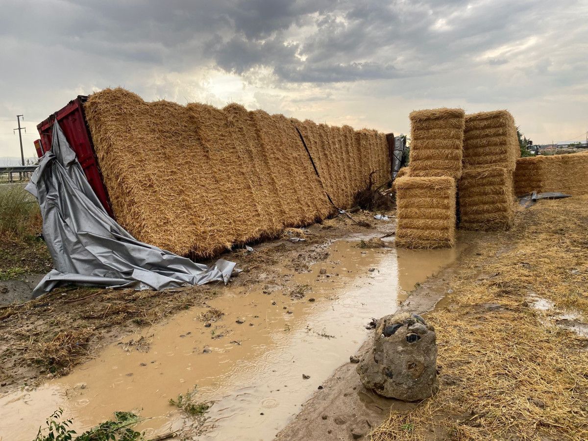 Çardak ilçe merkezine 2 kilometre kala yağış nedeniyle kayganlaşan yolda kontrolden çıkan tır, sürücünün tüm çabalarına rağmen kontrolünü sağlayamayarak yolun sağındaki şarampole devrildi.