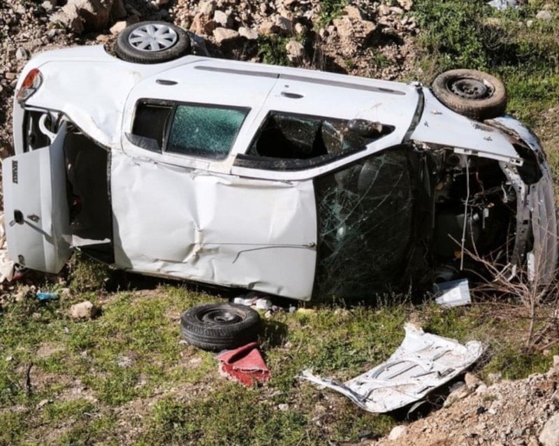 Çivril’de emniyet şeridinde park halindeki kamyonete çarpan otomobil kontrolden çıkarak yaklaşık 10 metre yükseklikten boş araziye düştü. Araçtaki 4 kişilik aile yaralandı.