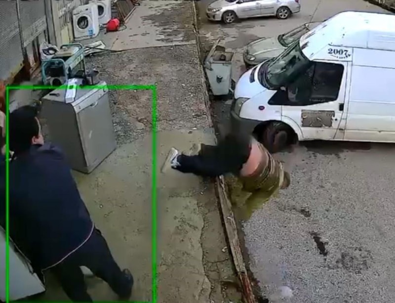 Olay anı ise çevredeki bir iş yerinin güvenlik kamerasında yansıdı.