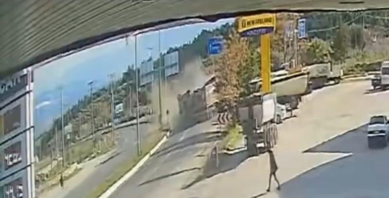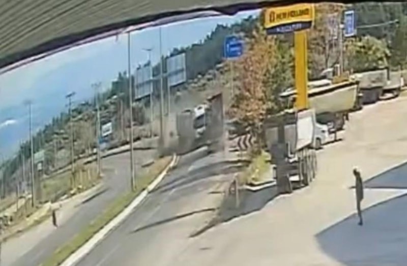 Meydana gelen feci kazanın görüntüleri ortaya çıktı. Karayolu üzerinde faaliyet gösteren bir akaryakıt istasyonunun güvenlik kamerasına yansıyan görüntülerde, tırın kontrolden çıkarak, karşı şeride geçip karşı yönde gelen tıra çarptığı anlar yer aldı.