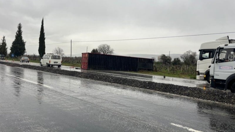 Kaza sonrası yol bir süre trafiğe kısmen kapatılırken ihbar üzerine bölgeye gelen ekipler, gerekli güvenlik önlemlerini aldı. Kazada ölen veya yaralanan olmazken, dorsenin yoldan kaldırılmasının ardından trafik akışı normale döndü.