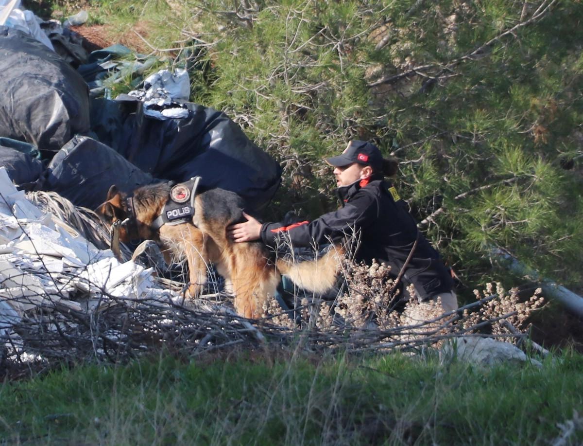 Geçen yıl kaybolan, evli ve 1 çocuk annesi genç kadının öldürülmüş olabileceği ihtimali üzerine polis, eşinin bahçıvan olarak çalıştığı otelin arka bölümündeki arazide kadavra köpekleriyle arama çalışması başlattı.