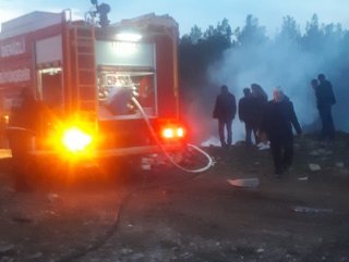 Taklalar atarak yuvarlanan otomobil bir anda alev topuna döndü. Olayın ardından çevredeki vatandaşlar 112 Acil Çağrı Merkezi’ne ihbarda bulundu. İhbar üzerine olay yerine çok sayıda jandarma, sağlık ve itfaiye ekipleri sevk edildi. İtfaiye ekipleri alevlerin sardığı otomobili hızlı bir müdahale sonucu söndürebildi.