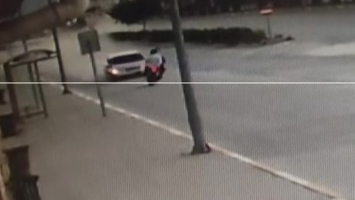 Kaza anı ise saniye saniye güvenlik kamerasına yansıdı. Aracı ile tali yola düşen Görücü, otomobilinin hakimiyetini sağlamak istediği sırada karşı yönden gelen motosikletli gençlerle çarpıştı.