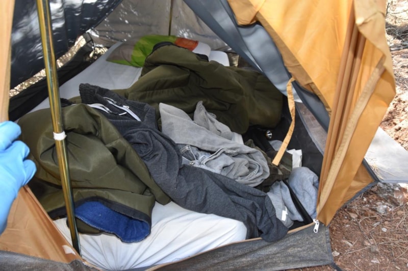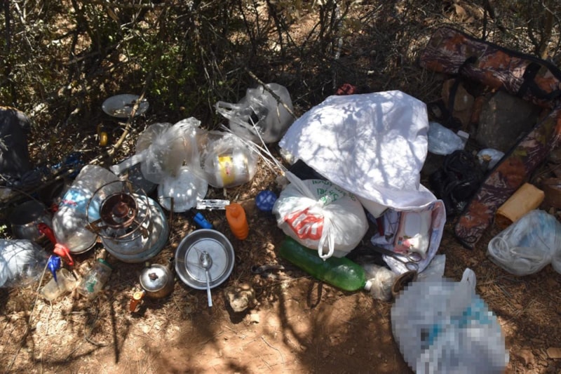 Kaçmasına fırsat verilmeden yakalanan Faruk D.'nin saklanmış olduğu alanın geniş ormanlık arazi olması nedeniyle bölgede asayiş komandolarca yapılan aramalarda ormanlık alan içerisinde 1 adet kamp çadırı, çadır içerisinde 105 gram esrar, yaşam malzemeleri, 1 adet ruhsatsız av tüfeği ve ormanlık alana özel olarak sulama sistemiyle hazırlanmış ekili halde kenevir bitkileri ele geçirildi.