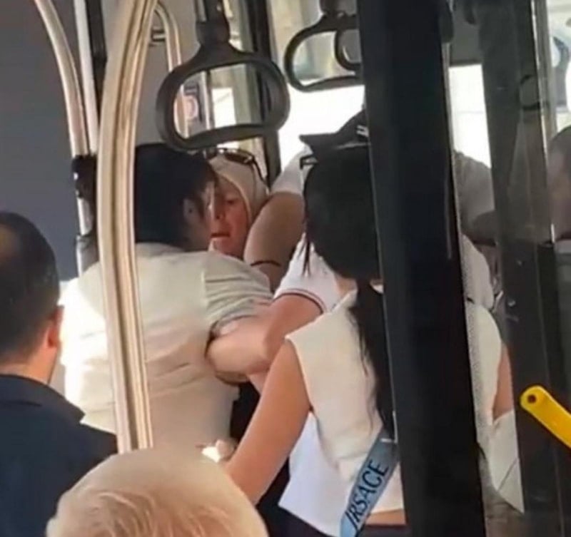 Tesettürlü kadın henüz yerine oturmadan başlayan hakaretler, diğer yolcuların şaşkın bakışları arasında şiddetlendi. Saldırgan kadın, yüksek sesle bağırarak “Defolun gidin buradan” gibi ifadelerle ortamı gerdi. Otobüs içindeki tansiyon kısa sürede yükseldi ve taraflar arasında itişme yaşandı.
