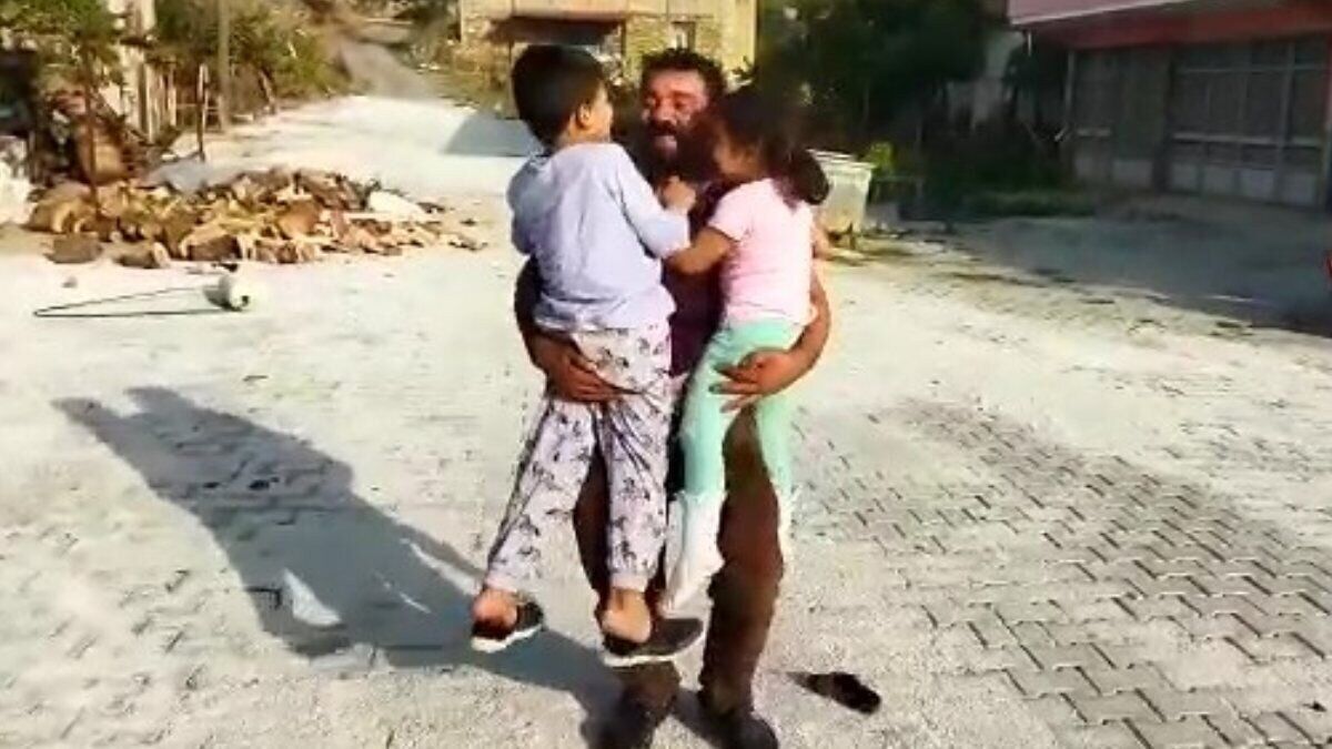 Babaları karşılarında görünce büyük bir sevinç yaşayan çocuklar, hızla koşarak babalarına sarıldı.